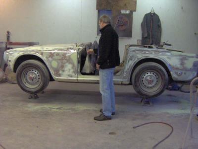 While my TR6 is now fully assembled and drivable, this Winter will see a “minor†teardown with removal of seats, center console, heater and trans hump, along with the bonnet in order to remove the engine and gearbox for installation of the new engine and replacement gearbox, clutch and pressure plate. Engine is a rebuild of a 45,000 mile ’75 unit. I used the old crank, pistons and rods. Replaced the cam with a GP2 from Goodparts, new mains and con rod bearings and small end bushings, new oil pump, shaved the head 60 thou and installed hardened exhaust valve seats, new hardened valves, HD valve springs and bronze guides with teflon seals also from Goodparts, solid rocker spacers with new rocker arm. Already have the Pertronix Electronic ignition installed and will transfer over after I send the dizzy to that shop in Minnesota for a rebuild and recurve.. Have the ZS carbs glass blasted and the tops polished by me and am now installing the complete carb rebuild kit from Moss. (Don’t forget the new diaphragms for the bypass valves if you’re doing this rebuild). Hoping to rebuild the heater motor as it’s making strange whirring noises. To round out the rebuild I hope to have the new header and Monza exhaust by Spring when the job should be finished. While the engine is out we’ll paint and detail the engine bay and install the new steering rack and rebuilt original rad. When CF53465U rolls out in Springtime with her new powerplant and wearing her brand new Yokohama Avid TRZ 205-70/15’s I expect a TR6 with a whole lot more attitude than the one that was rolled into storage on October. The attached pic is from the 2005 teardown for paint.