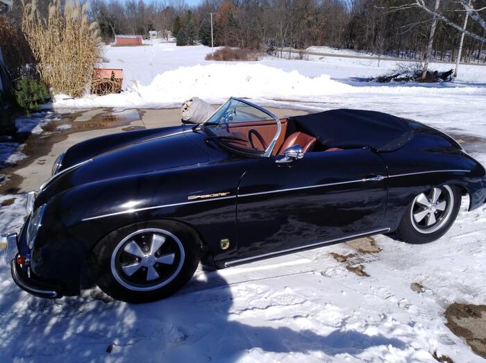 ...a nice driver 356 speedster replica...with many desirable upgrades 1915 hi comp engine with lightened flywheel,she revs!! dual del ortos,dual exhausts,4 wheel disk brakes comp clutch new suspension parts side curtains blk top half tonneau and full tonneau fuchs type 911 alloys decent interion with nardi wood wheel and bluetooth with no ugly radio hanging underneath and custon Ransho tranaxle with fantastic shifting experience.Has good rubber and everything works.Also have most all docs from new including sale receipt and build manual with some build notes. This is a CMC built car on a 88 VW platform