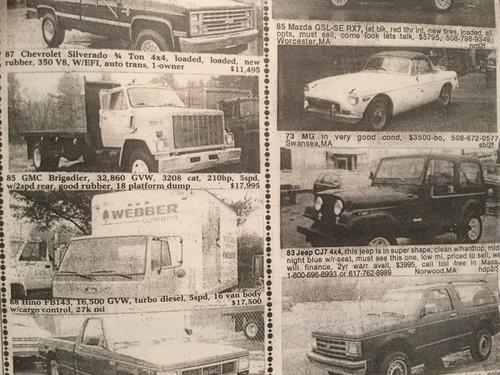 So I do not know who purchased the car originally or when it was purchased post the fall of 1974. I do know that the next owner was Dan Bell of Borger, TX who purchased the car off the Marshall Ford used car lot in1978. Without his help I could not have traced the early history of the car. When I contacted him, he said that he had the original radio, grease gun and owners manual. I purchased them from him for $20 and postage. The owners manual and radio confirmed the earliest date of the first purchase of the car. He purchased the car in 1978 and owned the car till 1980. During this time he drove it to the top of Pikes Peak during the summer of 1980 (earliest photo of car included take on return from the mountain). He sold it to Ted Jeffers of Guymon, TX later that year. He was elderly gentleman and only put about 400 miles on the car over the next year going out with wife and poodle dog and watching the sun set. Ted sold or gave the car to his son Bill Jeffers in 1981. He owned an oil field equipment business. The car was in a fender bender on November of 1985 and then sat in the yard unused for two years. The Texas oil business went bust in the mid 80s so there was an auction of his oil field equipment in December 1987 and the car was in the auction announcement (picture included). The photo did not show the bent fender. Russell Call of Liberal, Kansas bought it as a fixer up car. He only had it for six months and sold it in May of 1988 to Roland Wilson. Roland offered the car to his sister but she thought that she would 'get in trouble driving the car' so she declined the offer and he sold it to Eliza Souza in May '89 who shipped it up to Rhode Island at the back of a trailer loaded with tractors and other oil field equipment. Mr. Souza said he only bought is because he had a little room left in his trailer so it would fit in. Otherwise he would not have purchased it. The car sat around for the next 6 months then he listed the car in a car and equipment magazine with pictures of each item for sale ( picture included). I saw it there in January 1990 and purchased it from him. Therefor I am the 8th and last owner.